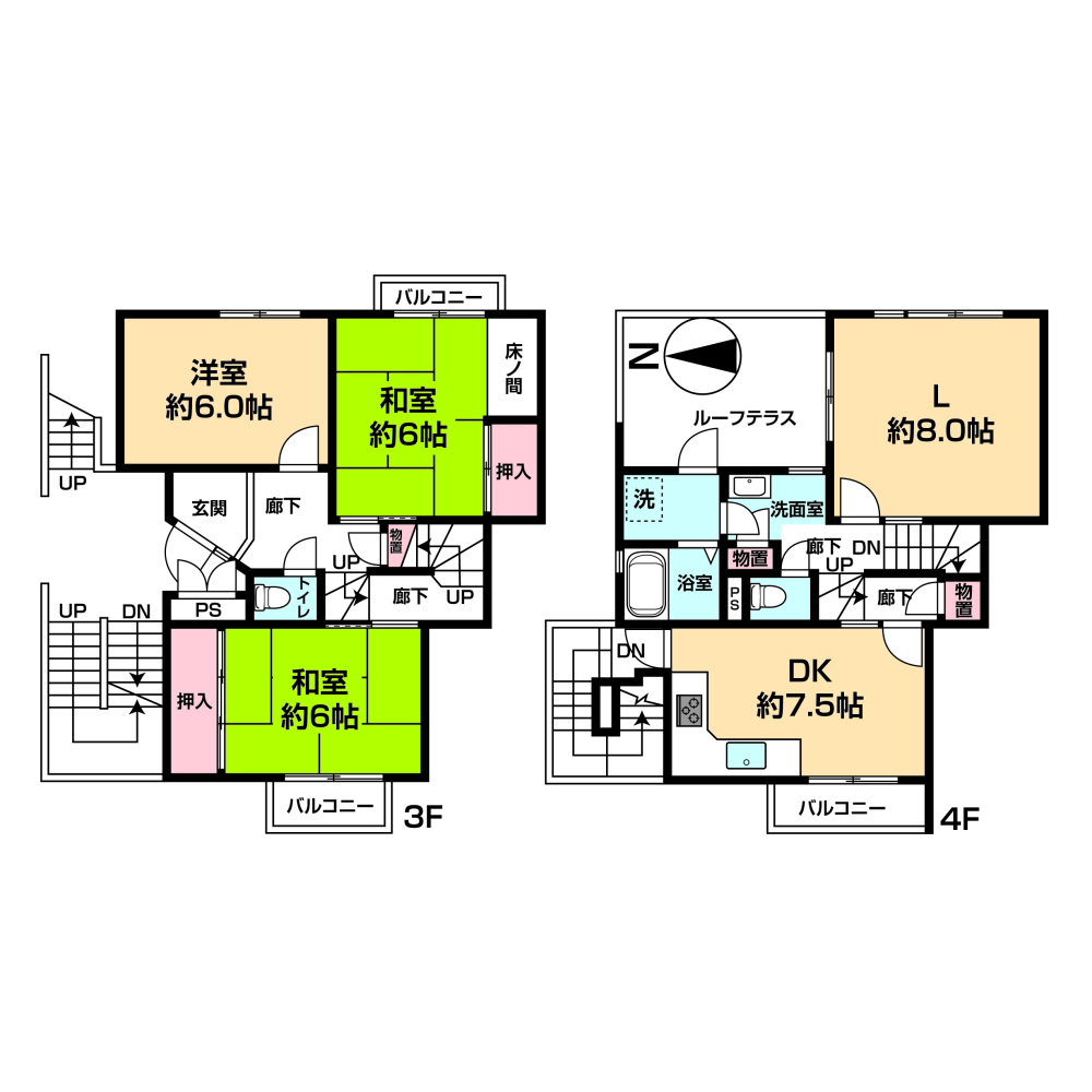 | 間取り | 4DK | 所在階 | 3・4階 |